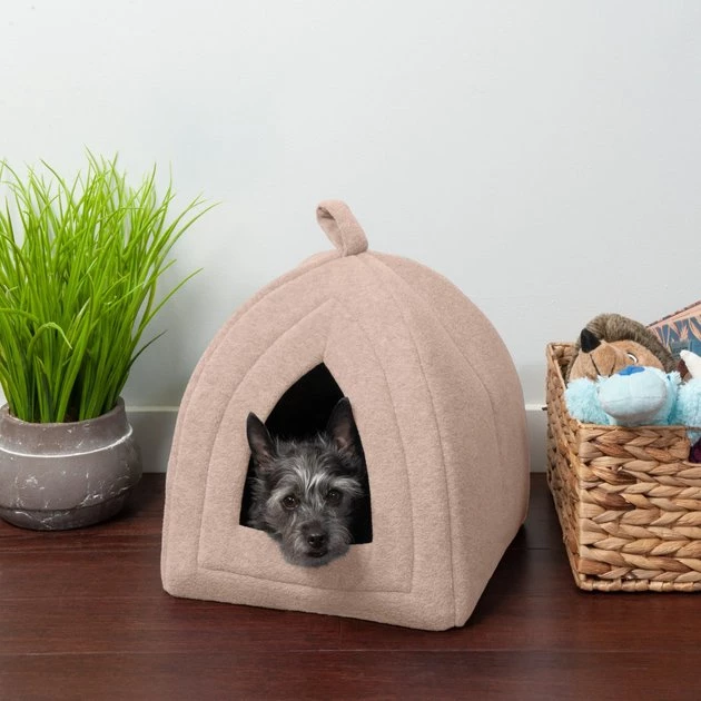 Provide your pet with a cozy space to call her own with the FurHaven Calming Fleece Covered Dog & Cat Bed. Built with insulating foam walls, this tent delivers the privacy and warmth dogs and cats love. This tent-style bed is especially paw-fect for paw-tners who tend to feel anxious and need an enclosed space to feel safe. It’s crafted from a warm polar fleece fabric in 100% polyester and for your convenience the included base pad is completely removable and washable! And when this tent is not in use, it folds easily for hassle-free storage and for traveling, too.