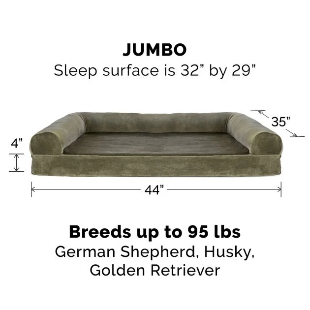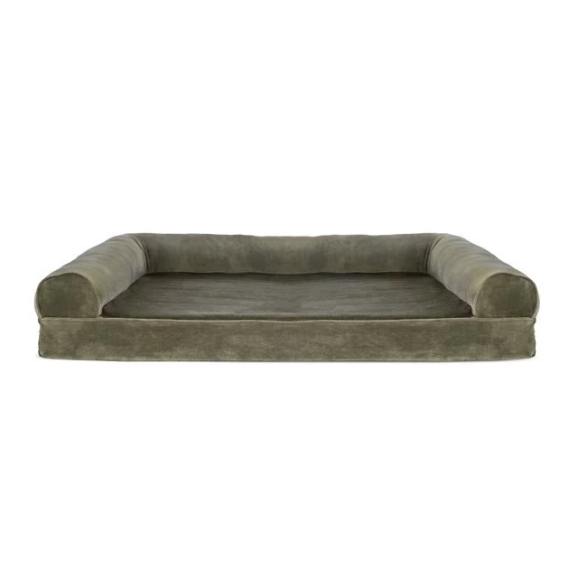 Give your furry family member the refreshing and comfy night’s sleep that they deserve with the soft and supportive FurHaven Faux Fur & Velvet Memory Top Sofa Dog Bed. With a luxurious faux fur and velvet cover and a base made from high-quality orthopedic memory foam to cradle your fur baby in comfort, this sofa bed provides the ultimate in cozy pet bedding. Your pup or kitty will even have a choice of snoozing positions, thanks to cushy bolsters on three sides creating a perfect place for snuggling up and counting sheep. And with this comfy sofa bed, your pet can claim their own napping zone in the house or you can place it on the couch next to you for sharing space with your furry friend without having to worry about fur or dander ending up on your furniture.
