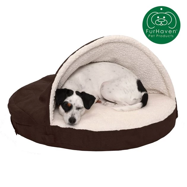 Give your precious snuggly pet a cozy den of her own with the FurHaven Faux Sheepskin Snuggery Orthopedic Dog & Cat Bed. This high-quality, comfortable bed is designed for pets who love to burrow into blankets and other cozy spots. Functioning as a soft, shapeable blanket, the top layer can be used with or without the flexible plastic hoop based on her preferred sleep style and burrowing habits. It’s fully lined in luxurious faux-sheepskin for warmth and comfort, while the solid orthopedic foam mattress supports ideal posture and eases joint comfort. For your convenience, the removable cover zips off easily for care and washing.
