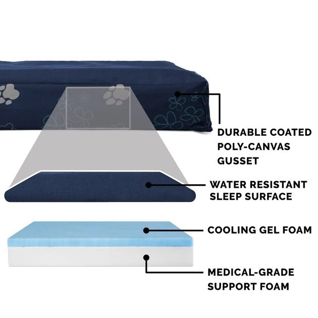 - Orthopedic bed with micro gel beads to keep the bed cooler for your furry friend.