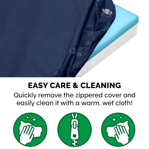 For best results – Remove filling (foam core). Wipe cover down with warm, wet cloth. Use mild soap as needed and rinse. Do not bleach. Line dry. Foam can be spot cleaned with mild soap as needed. Press excess water from mat. Do not wring. Air dry. Do not machine wash cover or foam.
