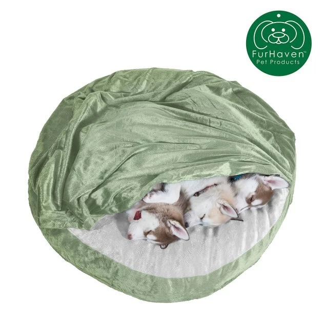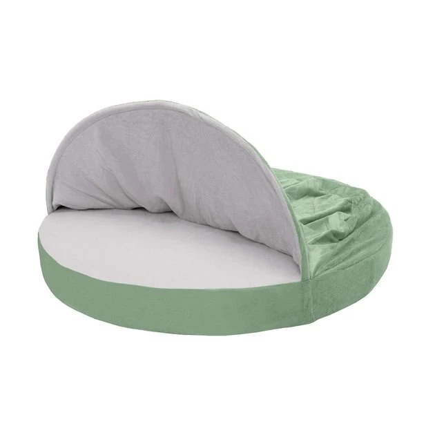 Give your precious snuggly pet a cozy den of her own with the FurHaven 35-in Microvelvet Snuggery Gel Top Foam Pet Bed. This high-quality, comfortable bed is designed for pets who love to burrow into blankets and other cozy spots. Functioning as a soft, shapeable blanket, the top layer can be used with or without the flexible plastic hoop based on her preferred sleep style and burrowing habits. The interior and exterior are made of cozy microvelvet fabrics for comfort and the unique layer of gel-infused memory foam activates with pressure to help keep your paw-tner cool. The laminated gel foam is also coupled with a medical-grade polyurethane foam base to help conform to your pet’s body and support joints and help relieve pressure points! And for your convenience, the zippered cover is completely removable and machine washable.