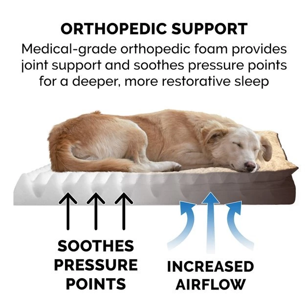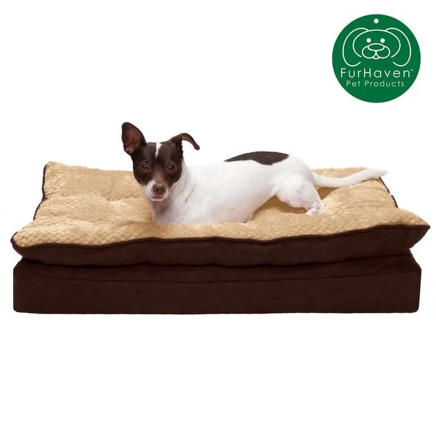 Give your fur baby her very own place to burrow and snuggle with FurHaven Mink Fur & Suede PillowTop Orthopedic Cat & Dog Bed! Featuring an attached fiberfill pillow, this cozy bed provides pets with a place to cuddle up after a long day. The pillow is zippered for easy removal and refilling as well. Lined with soft, faux mink fur that will not irritate sensitive noses and paws, this suede wrapped bed has a non-skid base that keeps it firmly in place. The orthopedic foam base supports your fur baby’s joints and pressure points, alleviating pain and promoting circulation for a better night’s sleep. The zippered, removable cover is washable, and the convoluted foam core can be spot cleaned for maintenance. Plus, it is lightweight, making it easy for you to take it with you on the go! Its tufted, faux fur lined top surface makes this comfy bed paw-fect for pets who love to sprawl out when they get their beauty sleep.