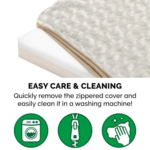 The FurHaven NAP Ultra Plush Deluxe Memory Foam Dog Bed gives your pet an ultra-comfortable bed that he might just love more than yours. Featuring a memory foam core that is laminated to medical-grade polyurethane, it works with your dog’s weight to cradle his body and provide relief to painful muscles and joints—making it the perfect retreat after a long day at the park, or for loyal companions that could use the extra support. The result is a longer, more restful sleep that can actually improve his health and energy, with a super-snuggly and durable exterior that will feel like a warm embrace.