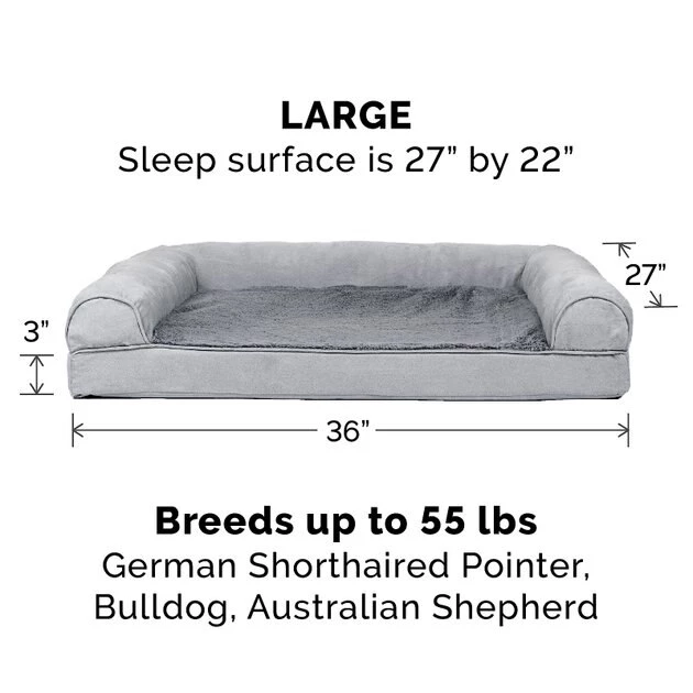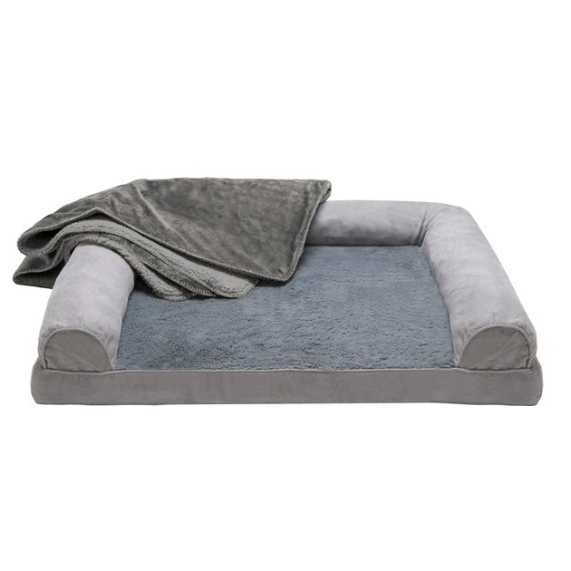 By providing your pet with a comfortable place to curl up and relax, you also help protect your furniture from pet fur and scratches! FurHaven Ortho Plush & Suede Sofa Cat & Dog Bed & Blanket provides endless comfort with a plush faux fur sleeping surface and an orthopedic egg crate foam base that supports pressure points and joints. This bed is paw-fect for arthritic pets or larger breeds who have trouble getting comfortable. It also features three suedline bolsters that can be used as a supportive headrest or just for snuggling against. And since it’s low to the ground, unlike your couch, this bed is a great option for older pets who are unable to jump like they used to. Plus, every purchase also comes with a FurHaven Pet Blanket, which is made from 100% polyester and has a reflective aluminum/expandable polyethylene foam core that self-warms by reflecting heat. The exterior is soft to the touch and the interior coating is waterproof to help protect surfaces from spills, dirt and dander. And for your convenience, the bed has a removable and washable cover and you can place the blanket in the washer on the delicate cycle and hang it to dry right after!