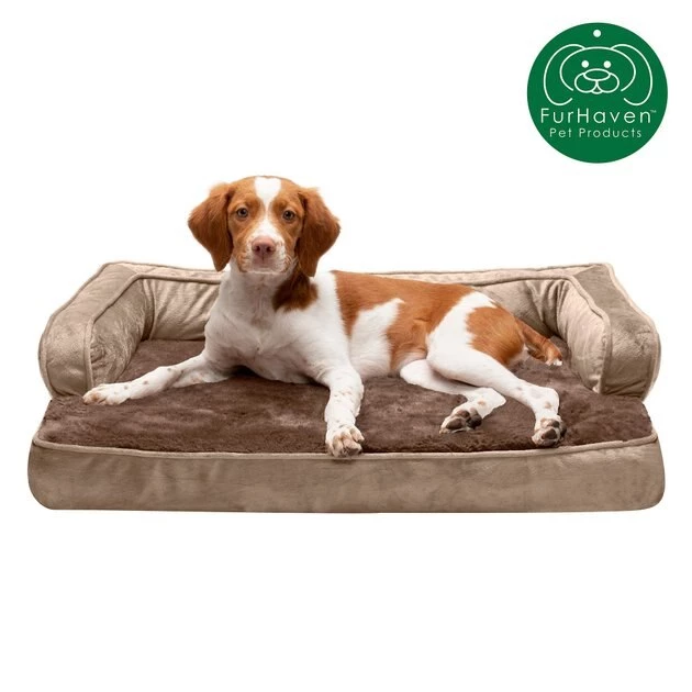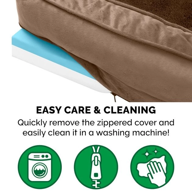 Your furry friend can curl up for a cool snooze on the FurHaven Plush and Velvet Cooling Gel Comfy Couch Dog and Cat Bed. This couch-style bed features micro-gel beads that help absorb body heat and wick it away from your pet—ideal for taking a nap during hotter months. The memory foam base conforms to your pal’s unique shape to help support her joints and pressure points for a more restful and restorative sleep. It features velvet-sided bolsters for a comfortable spot to snuggle against while getting support for her back and hips. The bolsters also provide a comfy pillow for better spine alignment when your pal rests her head. The luxuriously plush sleeping surface creates the perfect place for snoozing and the zippered cover is machine washable for easy cleanup. Sweet dreams, buddy!