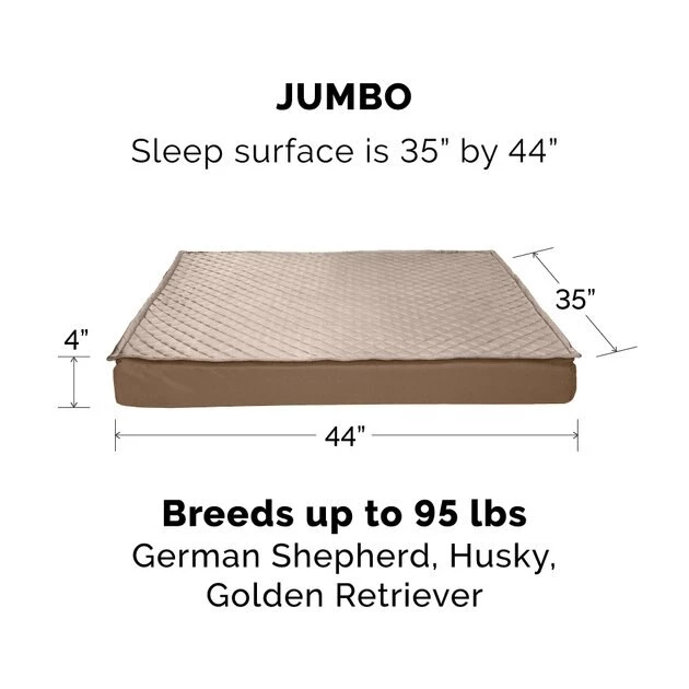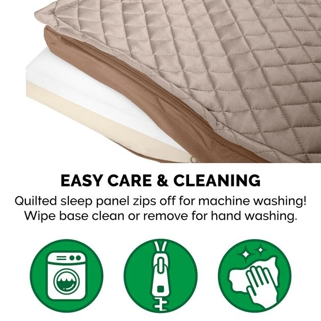 Give your fur baby her very own place to burrow and snuggle with FurHaven Quilt Top Memory Foam Convertible Indoor/Outdoor Cat & Dog Bed! Featuring a water-resistant poly-canvas base and a removable, quilted top panel, this bed is paw-fect for indoor and outdoor use. The removable, padded top panel provides extra cushioning—it can also act as a pocket for cooling and heating pads! The convoluted, orthopedic foam base and the layer of insulated memory foam support your fur baby’s joints and pressure points, alleviate pain, and promote circulation for a better night’s sleep. The low-profile, step-on design makes it accessible for older and disabled pets as well. This easy to clean, comfy bed is paw-fect for pets who love to sprawl out when they get their beauty sleep.