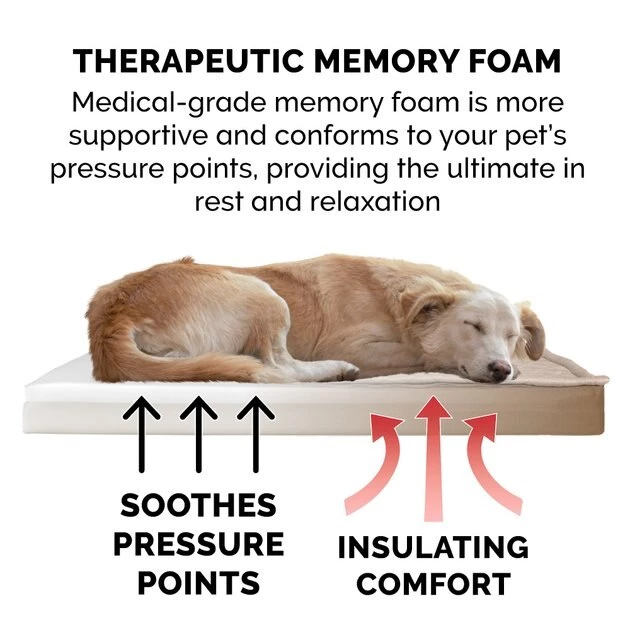 - Features an orthopedic foam base and an insulating layer of memory foam for joint and pressure point relief.