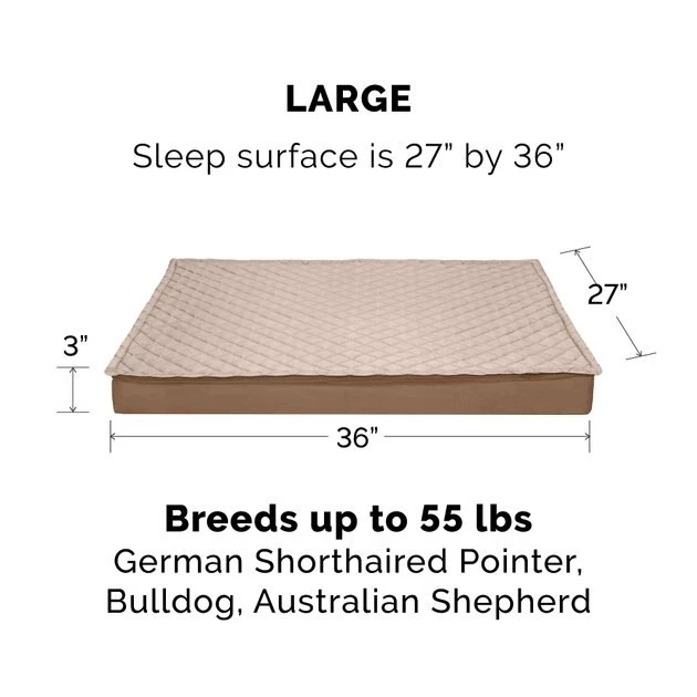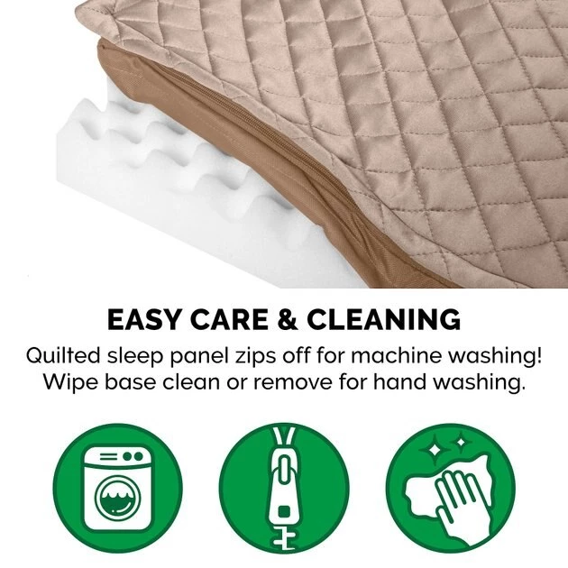 Give your fur baby her very own place to burrow and snuggle with FurHaven Quilt Top Orthopedic Convertible Indoor/Outdoor Cat & Dog Bed! Featuring a water-resistant poly-canvas base and a removable, quilted top panel, this bed is paw-fect for indoor and outdoor use. The removable, padded top panel provides extra cushioning—it can also act as a pocket for cooling and heating pads! The convoluted, orthopedic foam base supports your fur baby’s joints and pressure points, alleviates pain and promotes circulation for a better night’s sleep. The low-profile, step-on design makes it accessible for older and disabled pets as well. This easy to clean, comfy bed is paw-fect for pets who love to sprawl out when they get their beauty sleep.