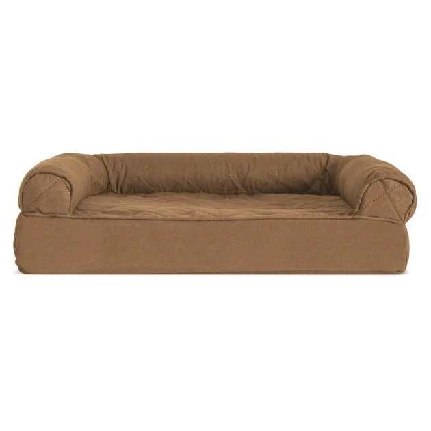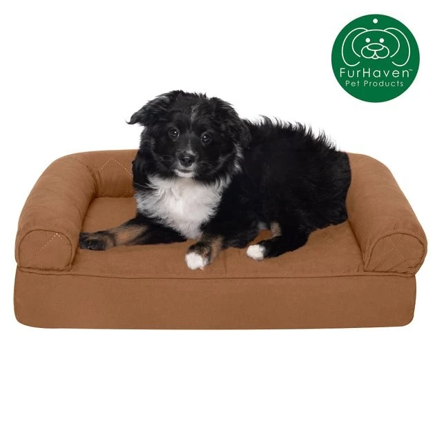 Curling up for a quick nap or a long night’s rest has never felt better when your sleepy pet has the FurHaven Quilted Orthopedic Sofa Cat & Dog Bed w/ Removable Cover. This high-quality bed is designed for maximum comfort with a soft, quilted sleeping surface and a dense, medical-grade orthopedic foam base. The egg-crate foam allows for better airflow and gently cradles her entire body in near weightless luxury to relieve pressure on her joints for a deep, soothing sleep. Three suede side bolsters provide a comfy spot to rest her head and offer back support for your cuddling pal, while the open side allows small, older or arthritic pets to easily climb in and out of the bed. Whatever position your pet prefers to sleep in, they’ll find nothing but comfort and sweet dreams!