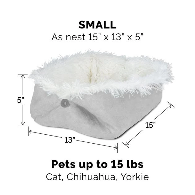 Give your furry family member the best of four worlds with FurHaven’s Self-Warming Convertible Cuddle Pet Bed & Mat. This unique piece can transform into four different designs—Nest, Couch, Canoe and Mat, all thanks to the simple button and elastic loop design (see video for step-by-step instructions). Whichever style your sidekick per-furs, she’s bound to love the self-warming comfort that the core has to offer. The core is designed with an insulating fabric that offers a soft surface and reflects your pet’s natural body heat back, creating a cozy, warm sleeping environment. Not only is the inside delightful but so is the suedine exterior. Best of all, this innovative piece is also completely machine washable for hassle-free cleaning!