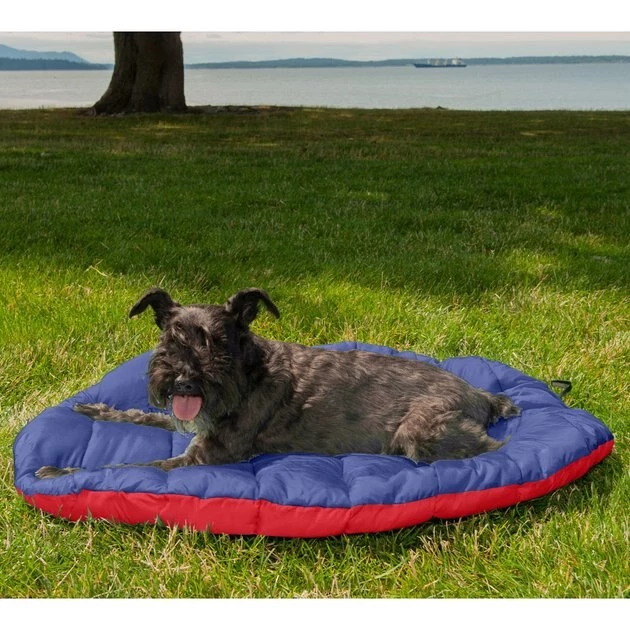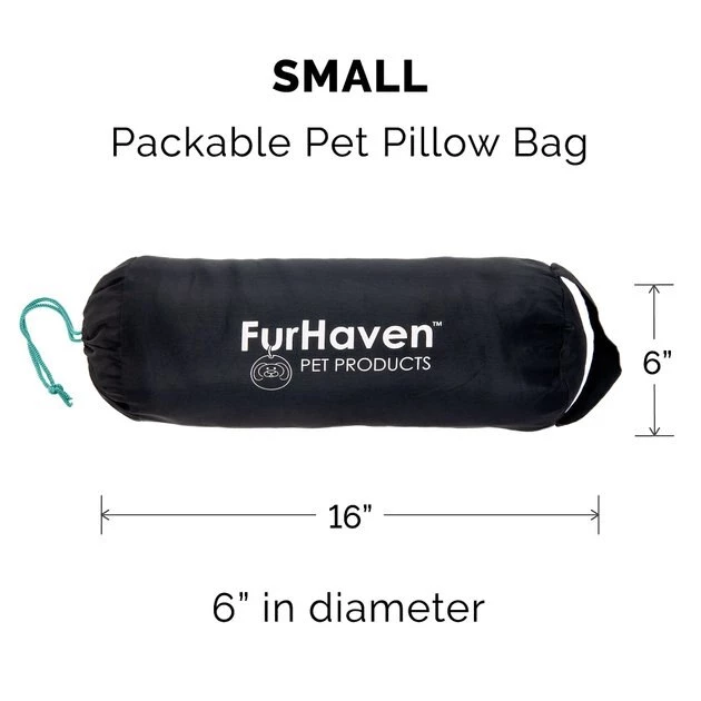 Help your dog find comfort wherever the road may take him with FurHaven Trail Pup Packable Stuff Sack Travel Pillow Dog Bed! This convenient and comfortable bed is stuffed and quilted with high-loft polyester batting and the lightweight polyester shell makes it easy to shake off dirt, grass and fur for a quick cleanup on the go. For an even deeper clean, you can place the bed in the washing machine and line dry it for best results. This two-colored design allows you to switch up the look whenever you please, whether you are at home, in the car, camping or on an RV trip. And not only is it ultra-soft, but it helps keep your pet insulated from the cold, hard ground during those cooler months. This bed comes with a lightweight, logo-printed stuff sack that’s designed with a handle for hassle-free storage and packing!