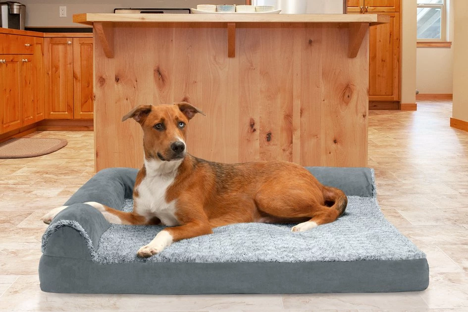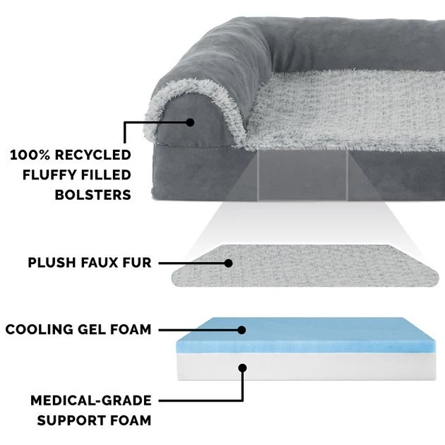 FurHaven’s Two-Tone Faux Fur & Suede Deluxe Chaise Lounge Cooling Gel Top Sofa Pet Bed will have your sidekick feeling like a VIP—very important pet that is! Now, your furry friend can enjoy a bed that’s designed with a faux fur surface and comfortable medical-grade, orthopedic foam core that conforms to her shape, supporting joints and pressure points. The L-shaped, suede bolsters also offer plenty of hips and back support and can even be used as a comfortable pillow. But that’s not all—this bed also has a unique layer of gel-infused memory foam to help keep your paw-tner cool by reducing the soft sleep surface by one or two degrees. And when the bed gets a little dirty, all you have to do is remove the cover and wash it in your washing machine!