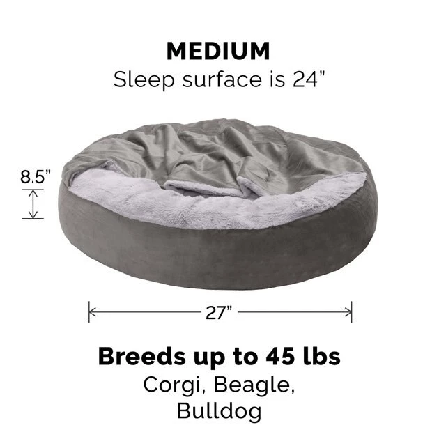 Your furry friend is going to love to nest and hide in this FurHaven Wave Covered Pillow Cat & Dog Bed. The high-loft fiber fill creates a warm, insulating den for snuggling, while the soft hood serves as a built-in blanket for added warmth and gives your pet the privacy she needs to feel secure and safe. The luxurious wave faux fur and plush velvet are soft to the touch to make nap time extra cozy for your canine companion or your feline friend! And for your convenience, it’s completely machine washable for hassle-free cleaning!