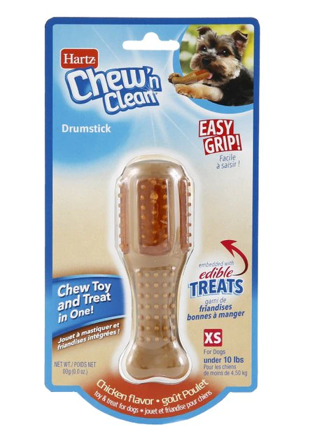 Your best fur-iend won’t want to let go of their new Hartz Chew ‘n Clean Chicken Flavored Drumstick Toy! It’s embedded with super yummy, chicken-flavored treats for extra engagement at playtime. Mild and moderate chewers can easily hold the toy with their paws or in their mouth, thanks to the fun drumstick shape. Best of all, its’ outer texture works to clean teeth and massage gums, helping improve doggy dental health. For a toy that’s as entertaining as it is beneficial, this Hartz brand toy is the way to go!