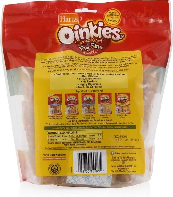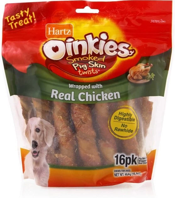 - Twice-baked, chicken-wrapped pig skin treats provide a great way to occupy dogs that love to chew with their delicious smoked flavor.