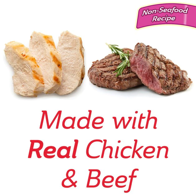 - Combines tender, real chicken with rich, meaty beef and a savory broth.