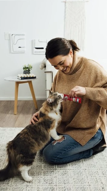 - The first interactive wet cat treat that can be fed by hand, making snack time for your feline friend especially fun!