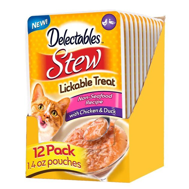 Give your furry bestie a burst of flavor with Hartz Delectables Stew Non-Seafood Chicken & Duck Lickable Wet Cat Treats. These unique, lickable liquid treats for cats are blended to create a delicious and delightful snack for your sidekick. They are made with a hearty, seafood-free recipe that combines tender, real chicken with rich, flavorful duck and a savory broth. These liquid cat treats are paw-fect for senior kitties who have trouble chewing and can be used as a food topper for other cats too! They are packaged for your quick-serving convenience in handy, easy-to-open, single-serve pouches just for your precious pal.