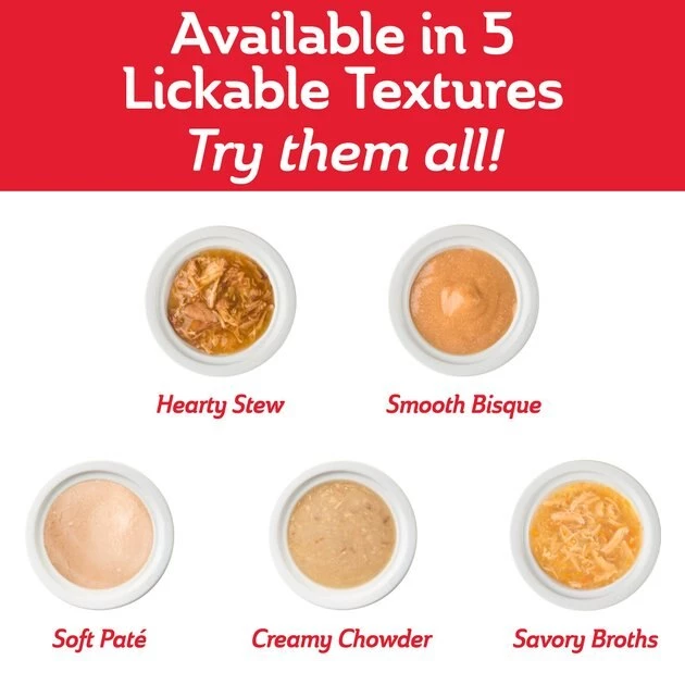 - Lickable treats made with tender chicken or fish in a savory sauce for the flavor and texture your cat craves.
