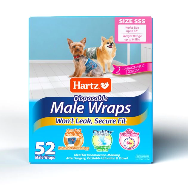 Remove the fur-ustration of your furbaby’s potty problems with Hartz Disposable Male Dog Diaper Wraps. Paw-fect for incontinence, excitable urination and while traveling, these wraps feature Hartz FlashDry technology, which instantly turns urine into a gel for leak-proof protection that can last up to six hours! These wraps also feature a unique Comfort Hold Strip, that you can reposition for a customized fit for dogs of all shapes and sizes. Plus, these wraps follow the natural contour of your pup’s waist, delivering a comfortable and breathable feel, with soft and stretchable gather that’s also snug and secure for plenty of protection.