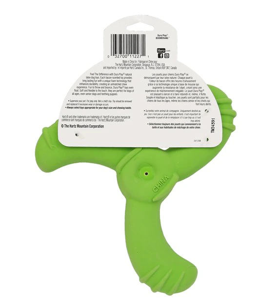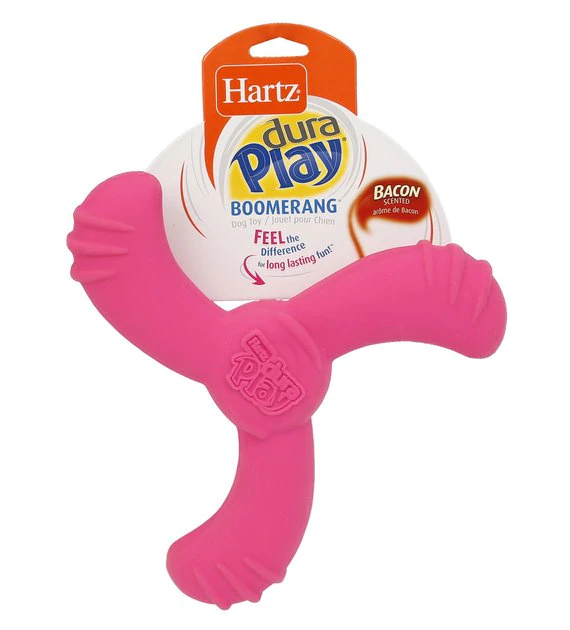 With a bacon scent and internal squeaker, Hartz Dura Play Boomerang Bacon Scented Dog Toy will leave your playful pup beggin’ for more playtime. It’s paw-fect for pooches of all ages, from teething pups to senior dogs, with an extra soft design and a durable natural latex shell. Whether he’s chewing on the ridges to massage his gums or playing fetch with you, he’s in for a tail-wagging time. It even floats for pool and lakeside fun!
