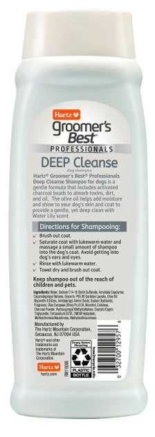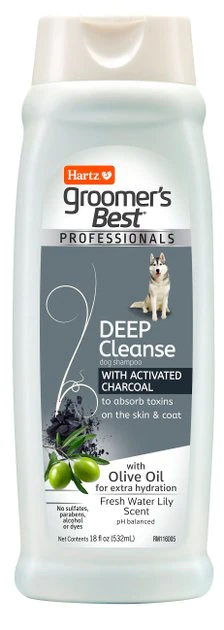 Bring the professional quality and gorgeous results of a trip to the groomer to your own home! Groomer’s Best Professionals Deep Cleanse with Olive Oil & Fresh Water Lily Scented Dog Shampoo offers a high quality, delightfully-smelling shampoo for dogs of all ages, breeds and fur types. The professional-grade formula with activated charcoal beads helps absorb toxins, while the olive oil works to moisturize your pup’s skin and coat—leaving behind a beautiful shine. Your canine companion will look great and—with a freshwater lily scent—will smell great too! This effective stay-at-home shampoo is free of sulfates, parabens, alcohol or dyes for a happier and healthier pet.