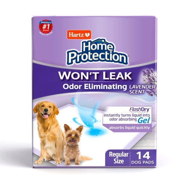 Help keep your home clean and free of urine smells with the Hartz Home Protection Fresh Scent Odor Eliminating Dog Pads. Made with Flash-Dry technology, these pads instantly turn urine into a gel to prevent it from leaking or spreading on your floor or carpet and getting on your furniture. The leak protection even extends to the corners, so all doggy messes are safely contained in the pad. Plus, it has a fast-acting fresh lavender scent for lasting freshness.