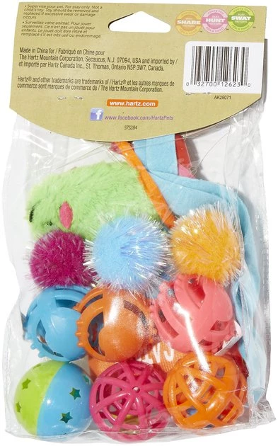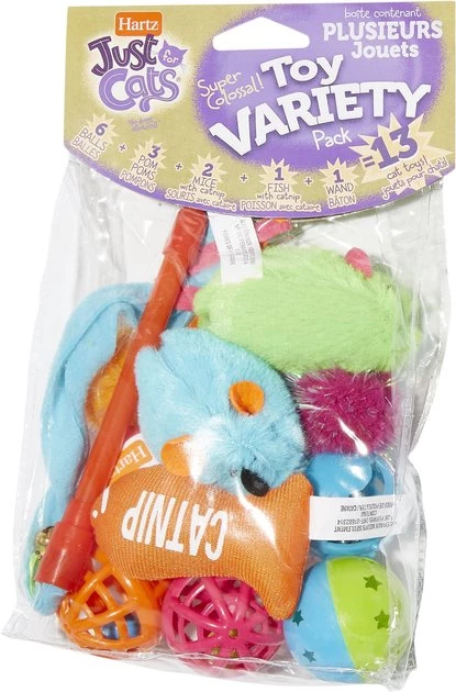 Give your kitty the playtime variety he loves with the Hartz Just For Cats Toy Variety Pack. It’s a purr-pourri of fun for your pal, with a kitty-approved combo of lightweight toys like catnip mice, pompoms, balls and more. It even comes with catnip to add a boost of excitement to playtime. The toys are perfect for independent play, yet are lightweight enough so you can toss them and watch your little hunter go! Plus, they’re made with pet-safe materials and help provide daily exercise and mental stimulation for your pal.