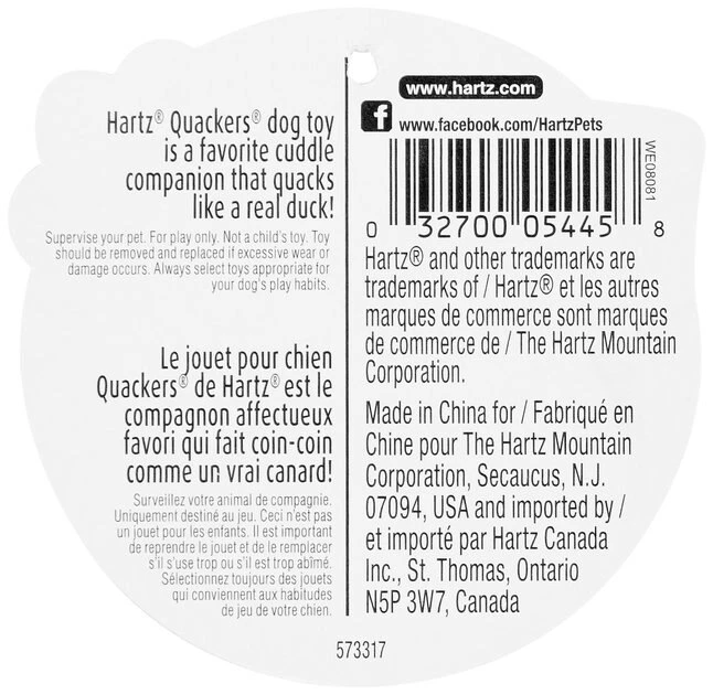 Hartz Nature’s Collection Quackers Dog Toy is your dog’s new favorite toy! Featuring realistic plush designs with great sounding squeakers, this toy is sure to be loved by pups that love chasing critters outdoors.
