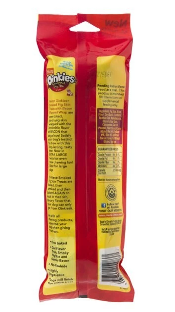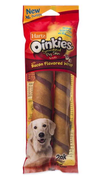 Keep your canine companion happy and occupied with Hartz Oinkies Smoked Pig Skin with Bacon Flavor Wrap Dog Treats! These savory pig skin treats are wrapped and intertwined with an irresistible bacon flavor that your pup will love! Satisfy your pal’s instinct to chew with this long-lasting, tasty treat, packed with flavor through and through! Oinkies Smoked Pig Skin treats are baked, smoked and then baked again to lock in that rich, savory flavor that will have your pup drooling with delight every time!