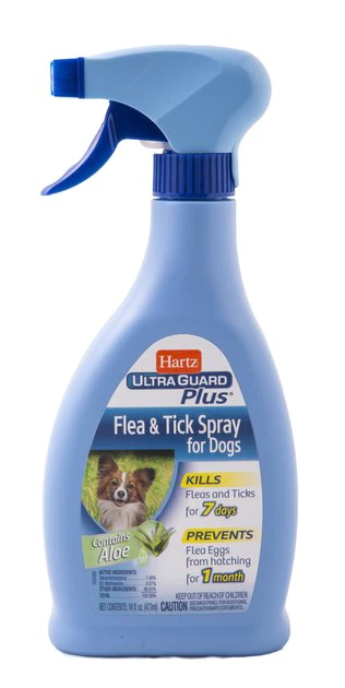 - Hartz UltraGuard Plus Flea & Tick Spray kills and repels fleas and ticks for up to 7 days, plus it kills and prevents flea eggs from hatching for up to 30 days.